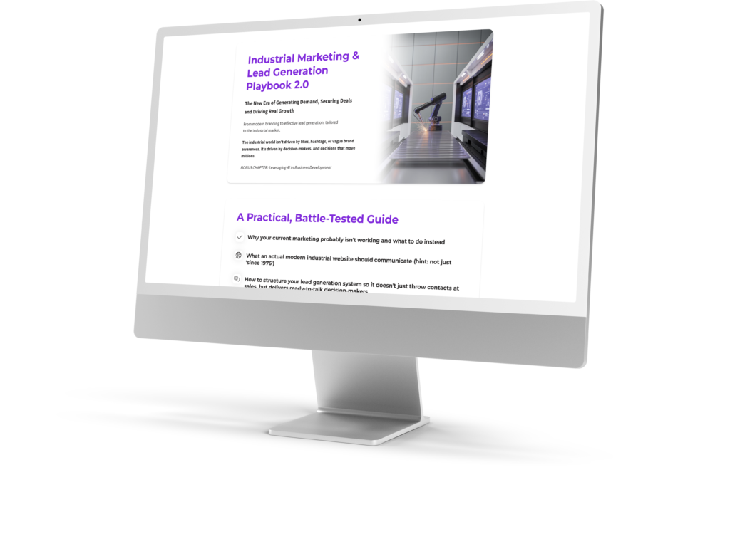 After a decade of building real sales pipelines for industrial companies across North America, Europe, the Middle East, and Asia, we’ve distilled everything we’ve learned into a 40-page, no-BS playbook, made for CEOs and sales leaders who want results, not likes or empty marketing buzzwords.